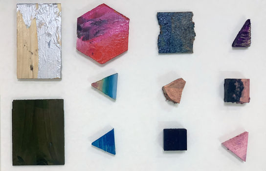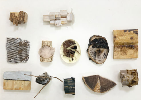 The test piece, with heated plastic sheets on the surface of wood, conveys the sense of attempting to replicate or replace something from nature with something artificial.